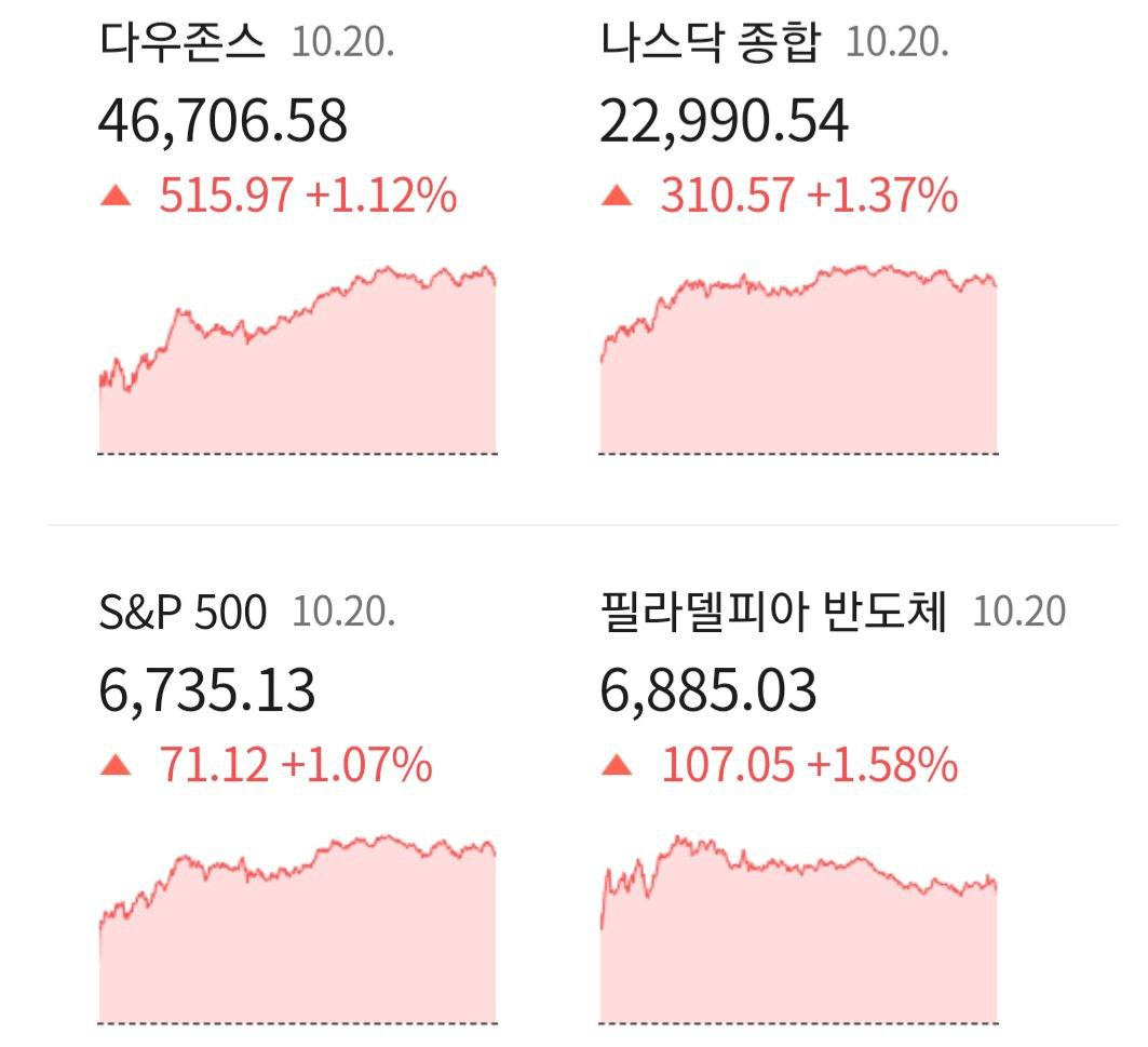 - 10/21 미 증시, 트럼프 발언과 애플의 힘, 그리고 강력한 실적 시즌을 기대하며 상승