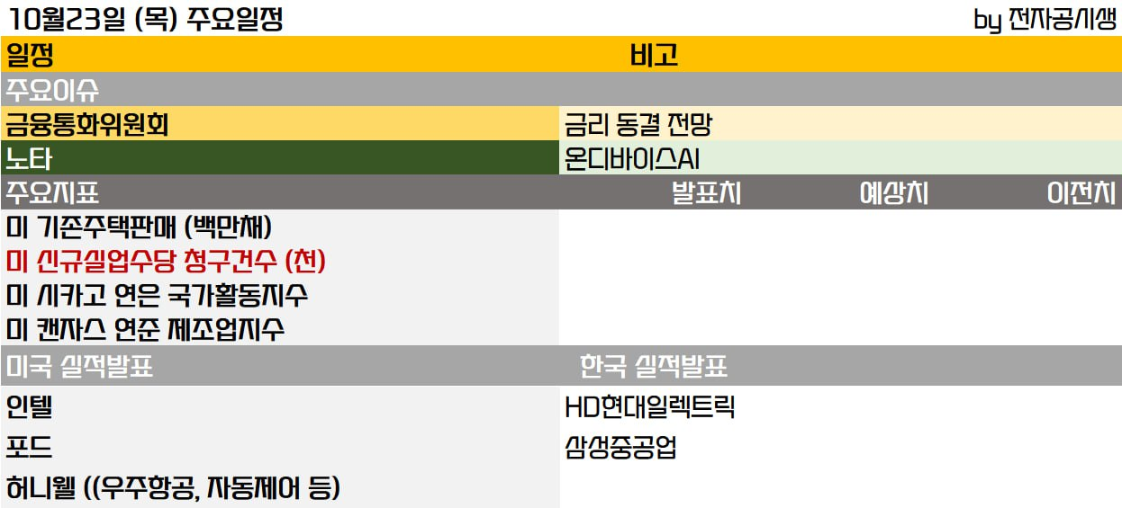 - 텍사스 인스트루먼트는 4분기 가이던스와 마진, 그리고 AI를 제외한 전방산업의 회복이 더디다는 코멘트를 하면서 -5.6% 하락했습니다.