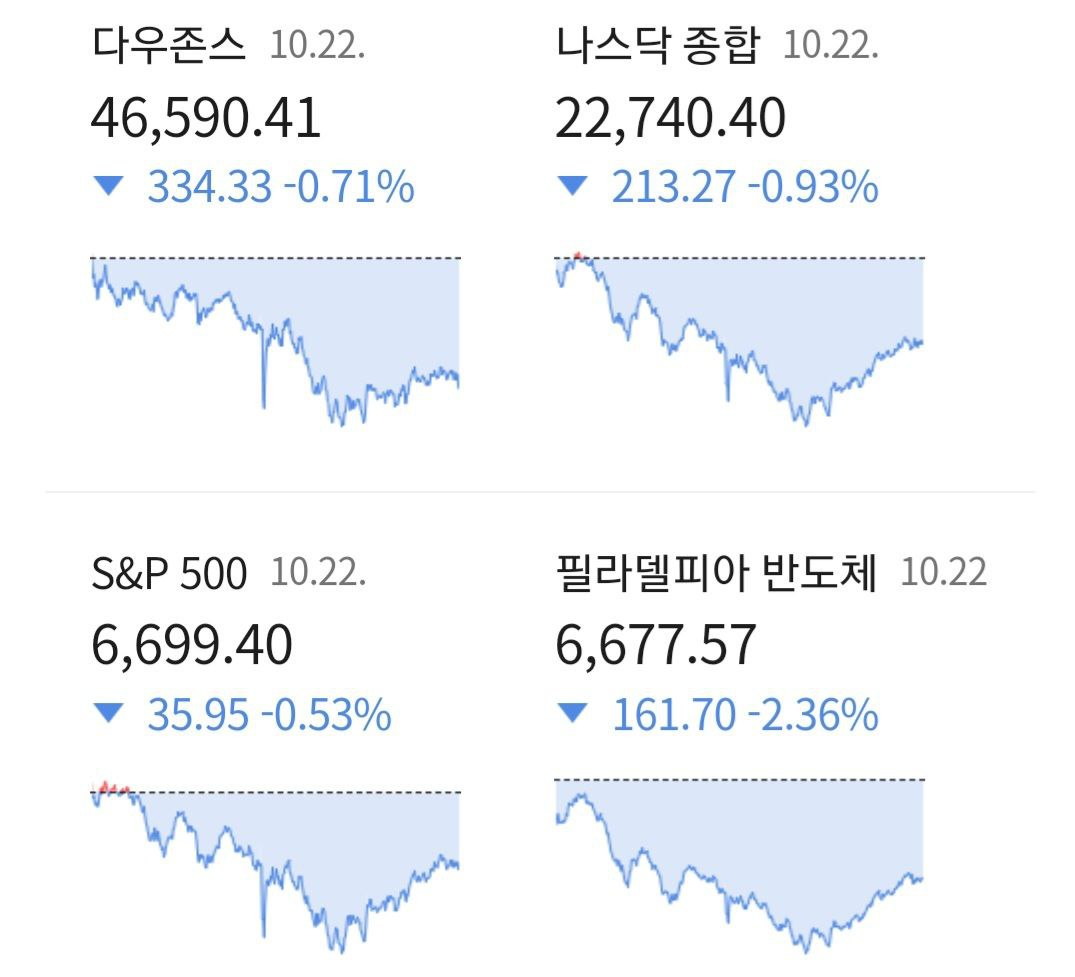 - 10/23 미 증시, 미-중 우려와 버블 붕괴 우려로 하락 후 낙폭 일부 축소