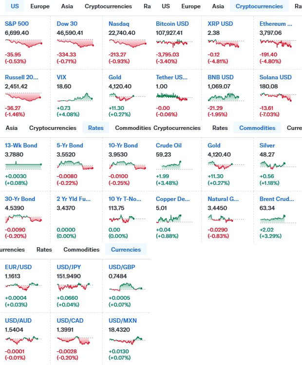 - 이런 가운데 금융시장 전반에 걸쳐 상승이 컸던 품목에 대한 공격적인 매도세가 이어지자 비트코인이 3% 넘게 하락하며 10만 8천달러까지 하락.