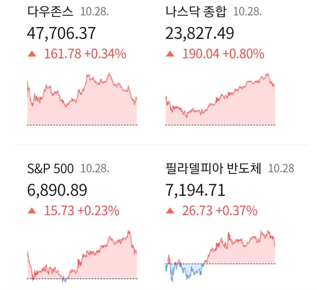 10월 29일 시황. 젠슨 황+미중 합의 기대에 최고치