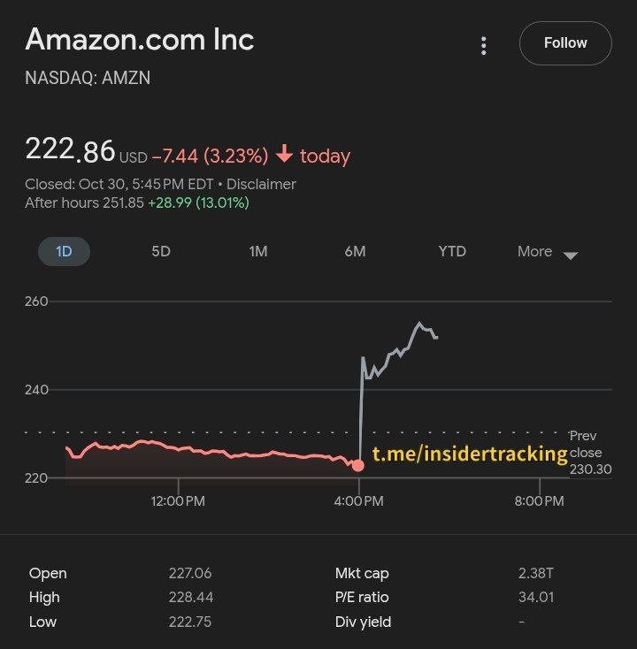 - 장마감 후 실적 발표한 애플 $AAPL, 아마존 $AMZN 시간외 거래에서 각각 +0.7%, +9.5%