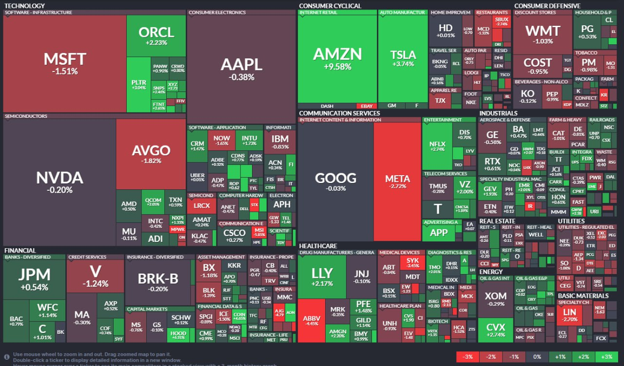 - 아마존은 3Q 매출 1,801억7천만달러, EPS 1.95달러로 예상 상회, 클라우드·CapEx가 호평받으며 주가가 9.58% 급등했습니다. CEO는 AI·인프라 수요가 강하다고 밝혔습니다.