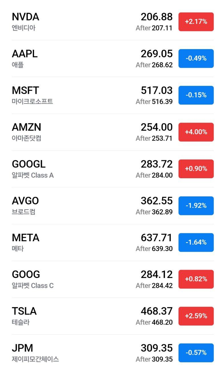 *특징 종목: 아마존, 엔비디아, 테슬라 강세.