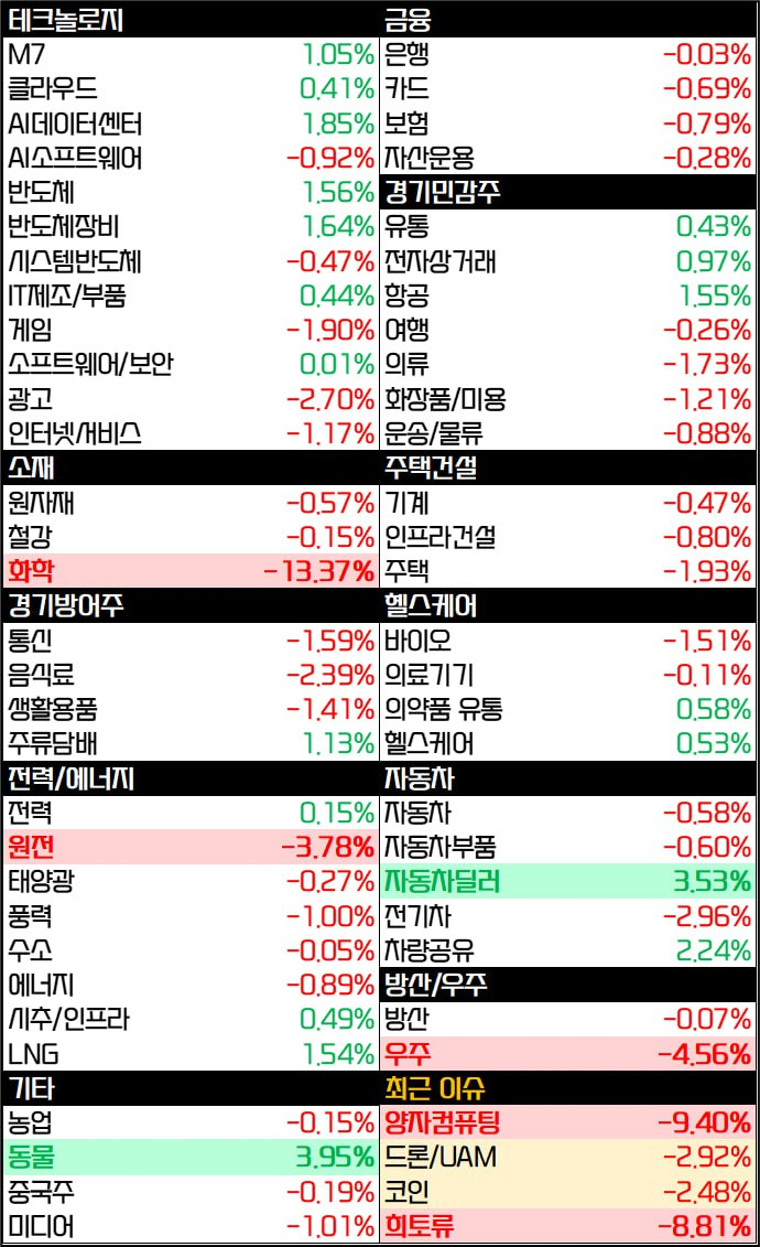 - 이때 암호화폐, 양자컴퓨팅, 소형모듈원전(SMR) 등 테마주 성격이 강한 주식들이 약세를 보였습니다.