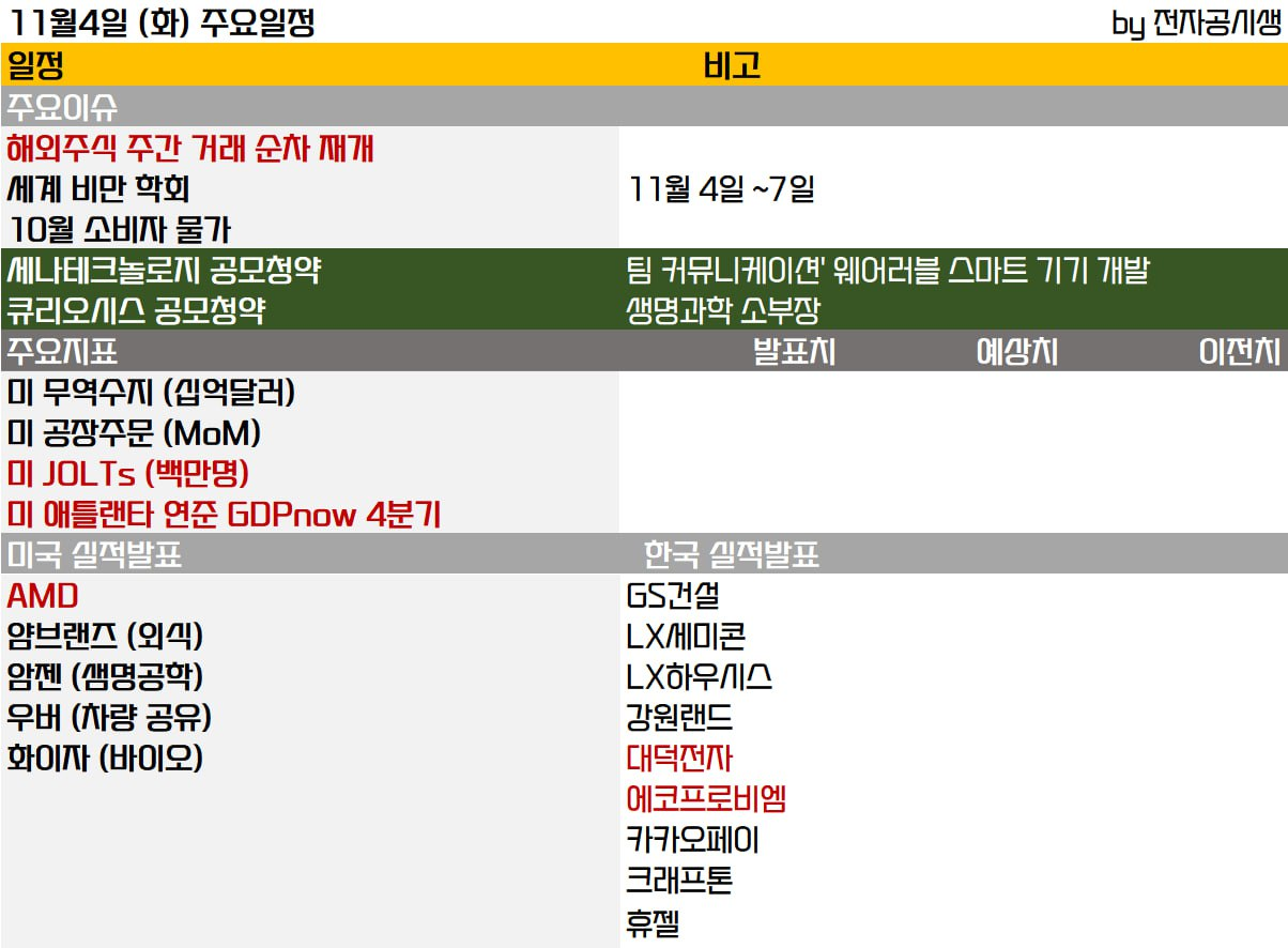 - 11/04 미 증시, AI 산업에 대한 영향 속 엔비디아, 아마존 등이 상승 견인