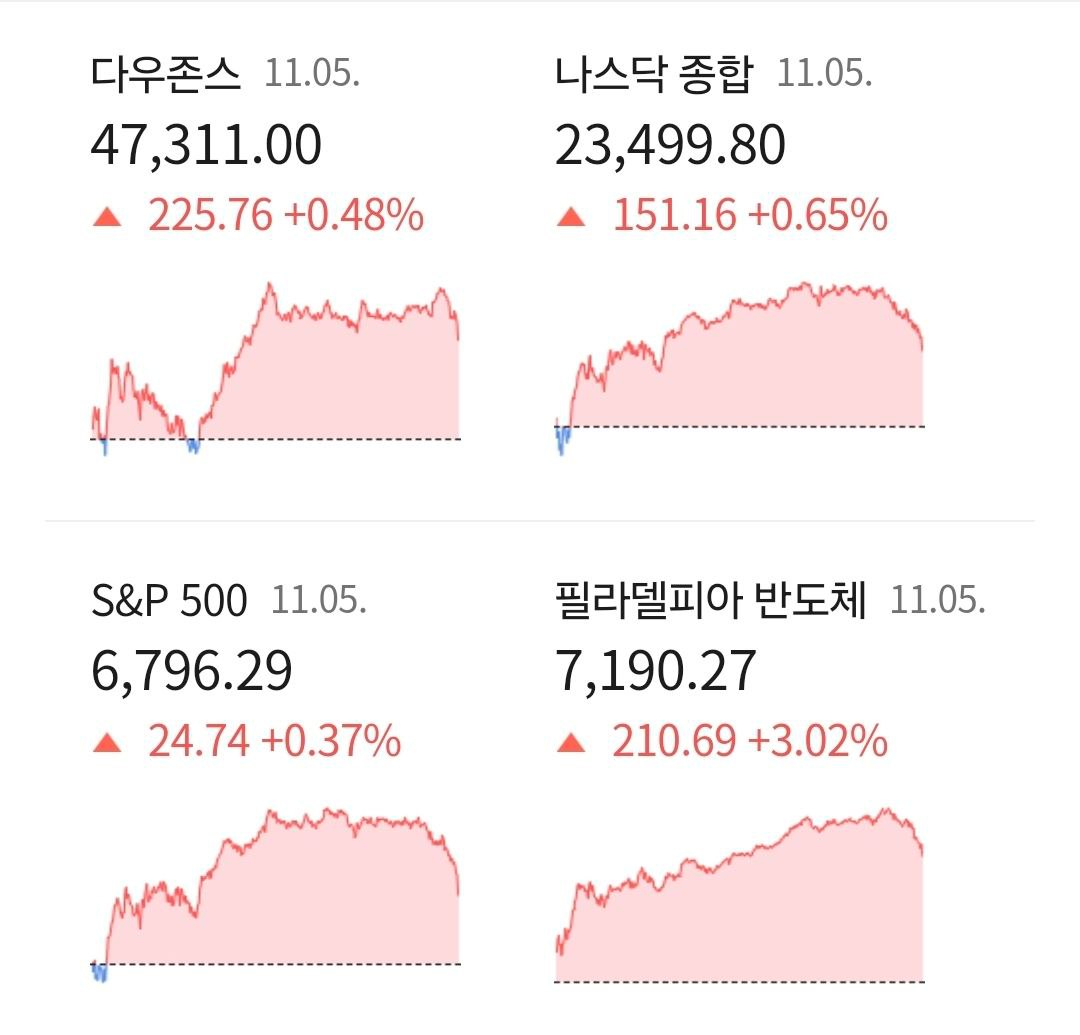 - 11/06 미 증시, 역대 최장 셧다운에도 마이크론 효과로 반발 매수세 유입되며 상승