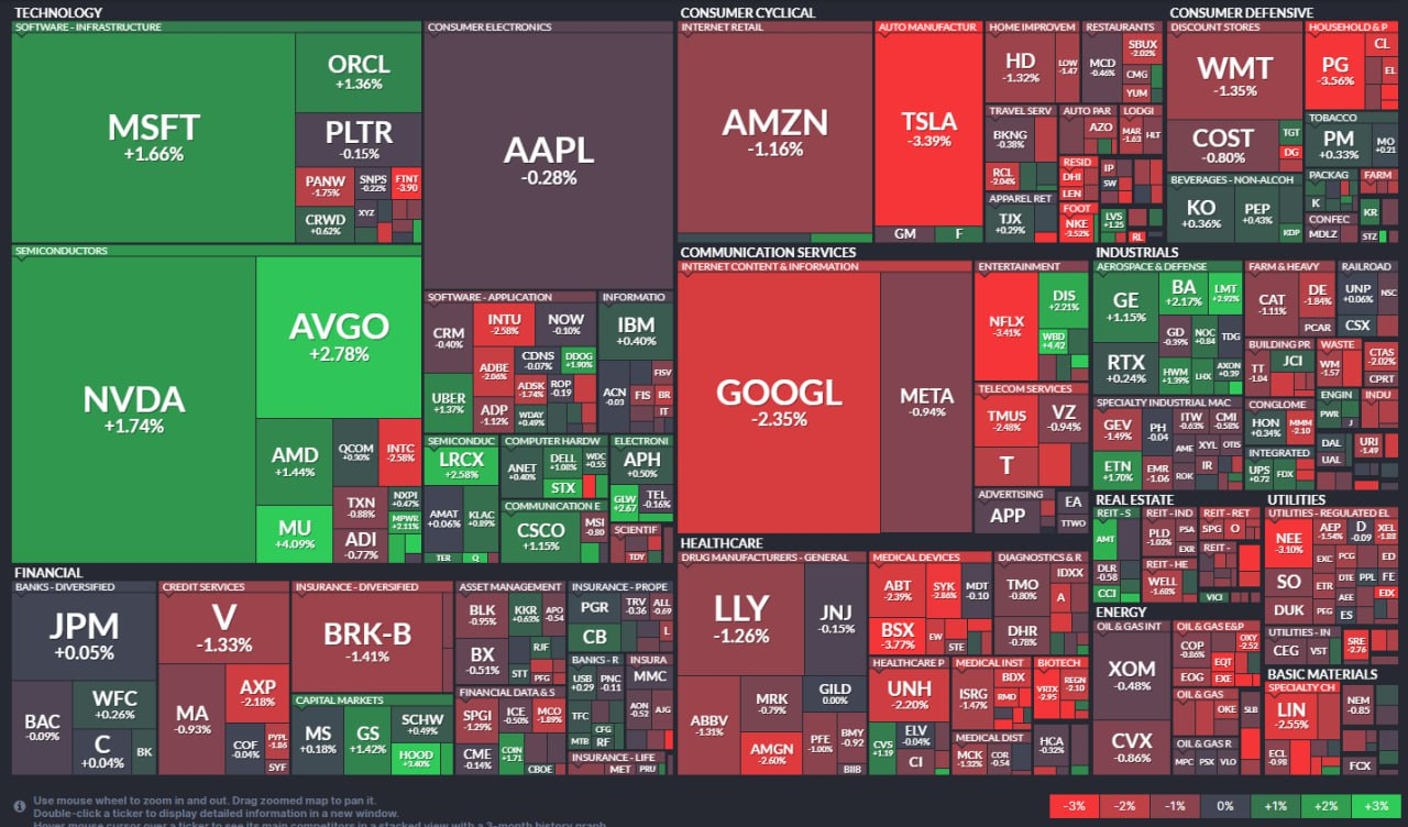 *특징 종목: 엔비디아, 브로드컴 강세 Vs. 테슬라, 알파벳 부진