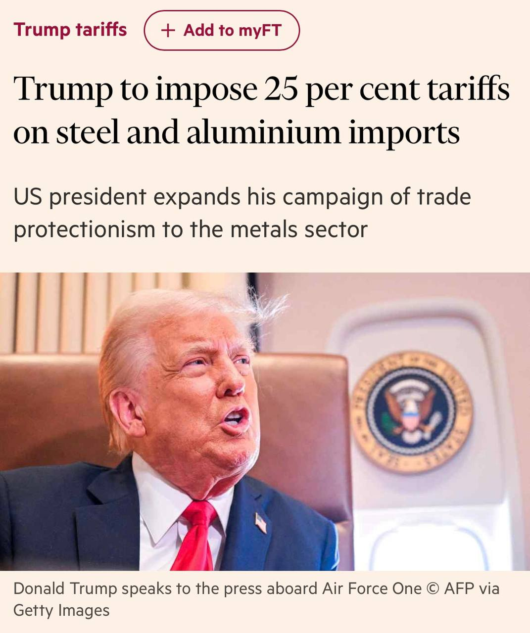 🔥 UTC 기준, 월요일 철강, 알루미늄에 대한 25% 관세 발표 예정