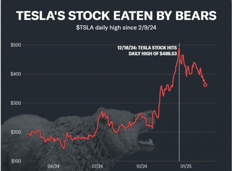 - "머스크, 본업에나 충실해라"...테슬라 주가, 실망 매물 쏟아지며 고점 대비 33% 급락