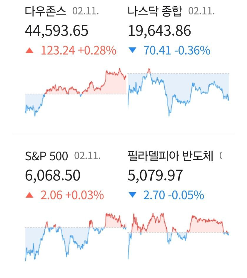 - 02/12 미 증시, 트럼프 관세 부과와 파월 의장 발언 소화하며 혼조 마감