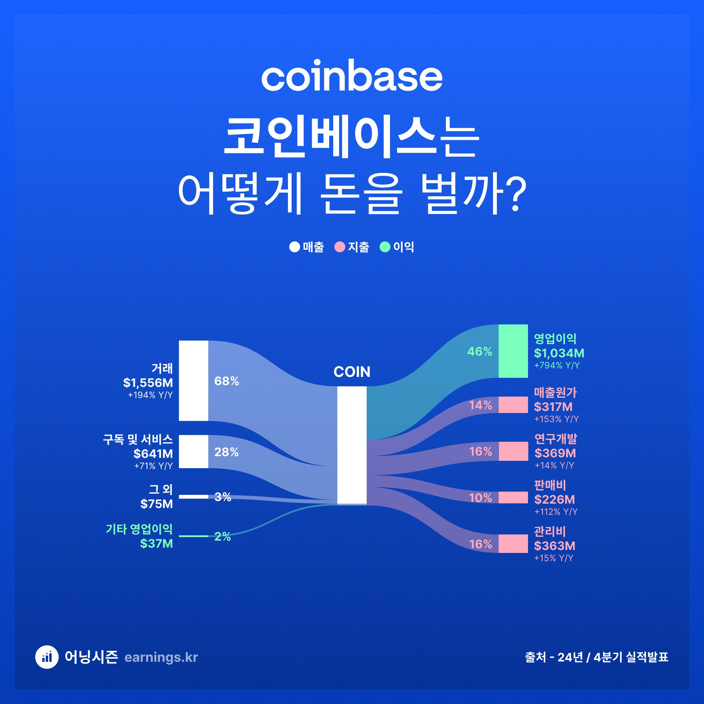 15, 트럼프 행정부의 암호화폐 지원 정책 전망에 힘입어 코인베이스의 회계연도 4분기 매출이 22억 7천만 달러로 애널리스트들의 예상치인 18억 7천만 달러보다 훨씬 높았으며 순이익도 12억 9천만 달러로 예상보다 높았습니다.