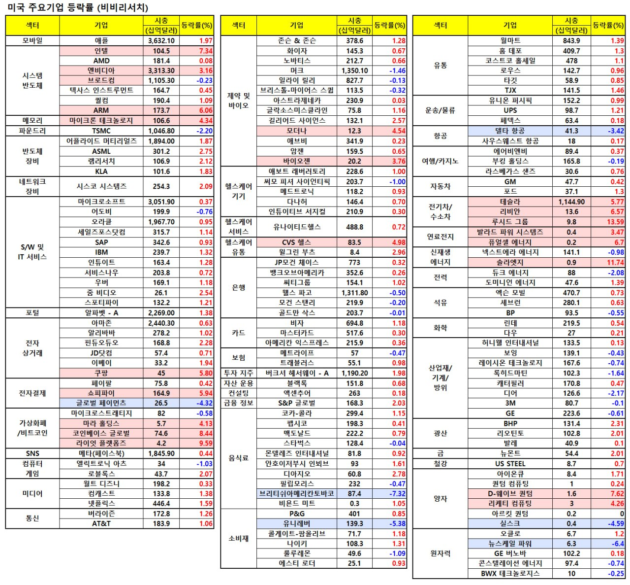 - 마이크론(+4.34%)은 웰스파고가 HBM의 도전과 전략적 성장 회복력을 이유로 매수 의견을 언급하자 상승.