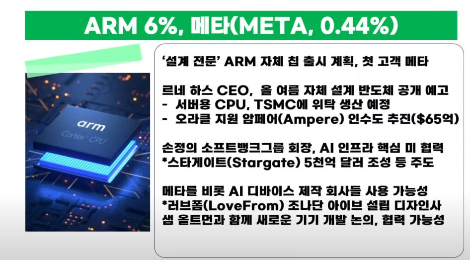 - ARM홀딩스는 고객으로 메타를 이미 확보한 것으로 알려져 있습니다