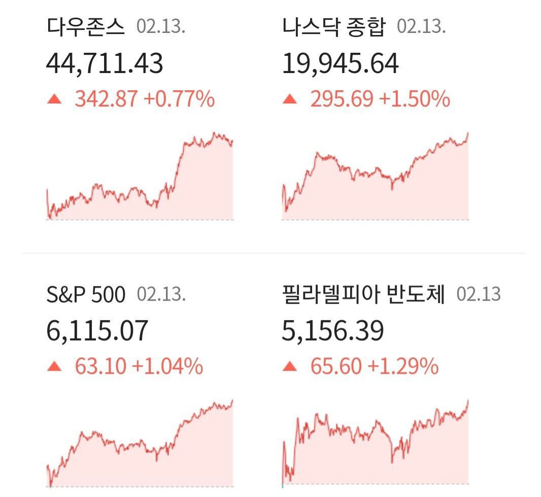 - 02/14 미 증시, 물가 불안 완화 및 상호관세 4월 이후 시행 소식에 상승 확대