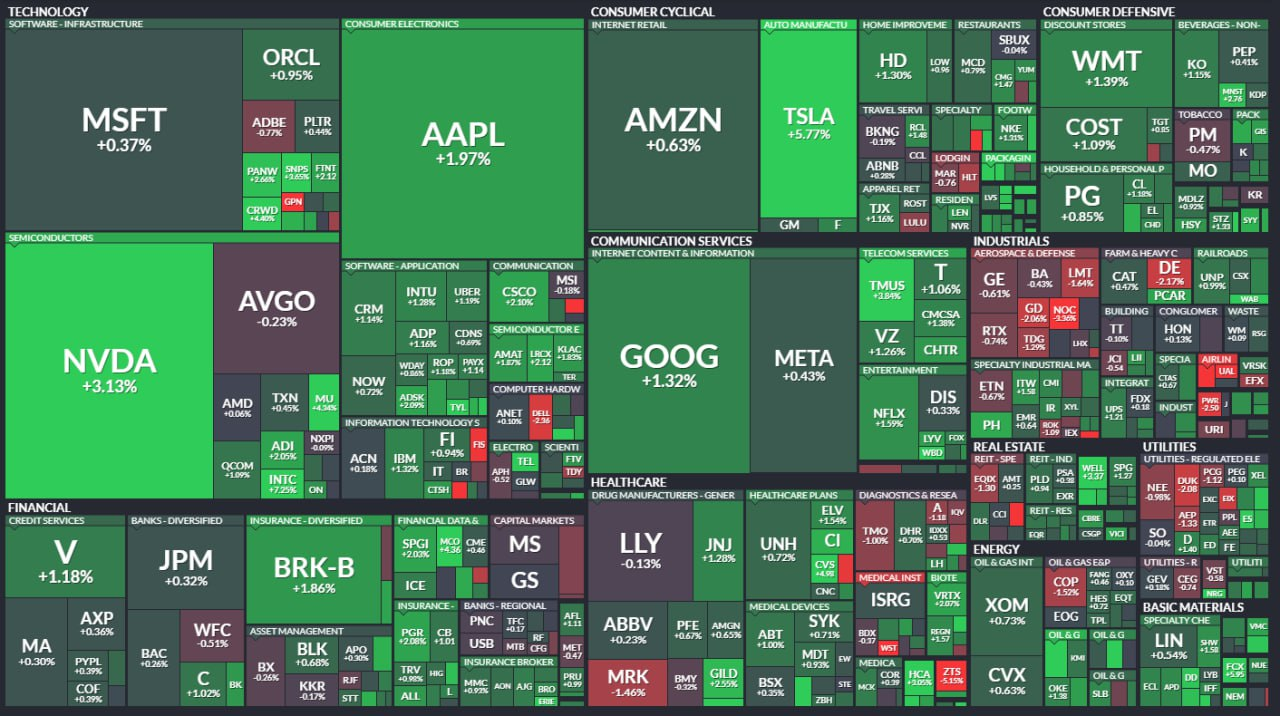 - 특히 최근 변화가 컸던 테슬라(+5.77%), 엔비디아(+3.16%)가 상승을 주도.