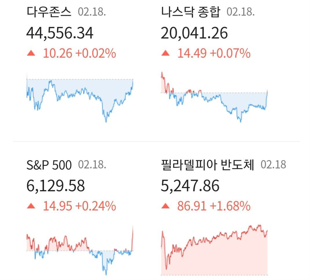 2월 19일 시황. 종전 협상. 반도체 랠리. 금리 상승