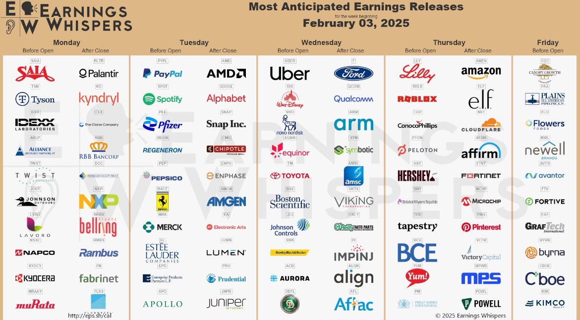 - 팔란티어(3일), 알파벳ㆍAMDㆍ페이팔ㆍ머크ㆍ화이자(4일), 월트디즈니ㆍ포드ㆍ노보노디스크(5일), 아마존ㆍ일라이릴리(6일) 등이 실적을 꺼낸다.