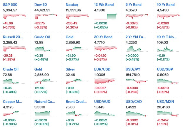 - DOW ▼ 44,421.91 (-0.3%)