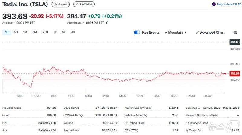 - 테슬라·애플, '관세 전쟁' 우려에 장중 주가 폭락