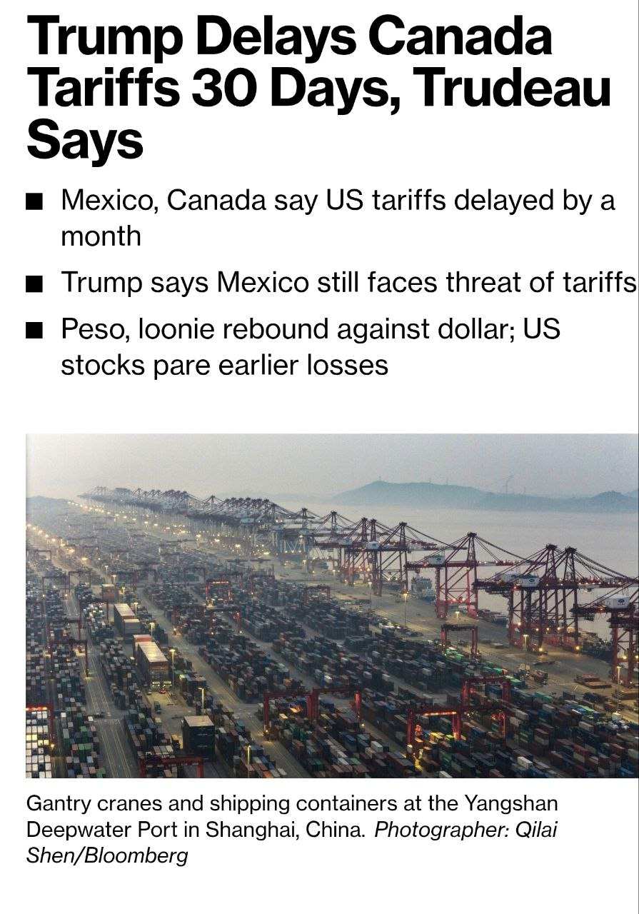 - 📍또한 조금전 🚨🇨🇦🇺🇲 캐나다의 트뤼도 총리는 트럼프와 캐나다에 대한 관세를 최소 30일간 중단할 수 있는 좋은 대화를 나누었다고 밝혔습니다
