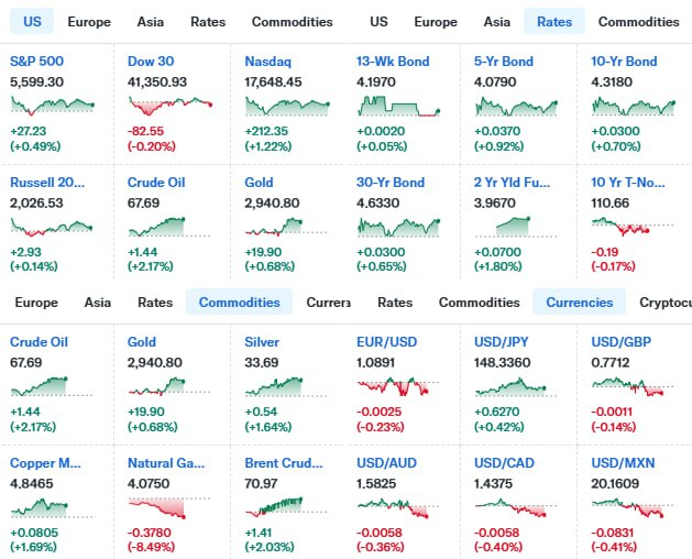 - S&P500 ▲ 5,599.30 (+0.5%)