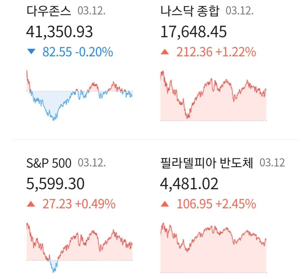 - 03/13 나스닥, 안정된 소비자 물가지수에도 관세 이슈로 변동성 확대 후 결국 상승 마감