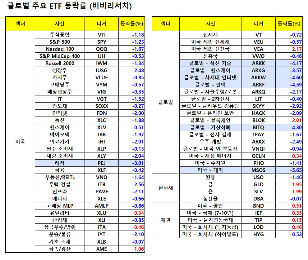 - 커뮤니케이션과 임의소비재가 가장 부진했고 여행 관련 주식은 계속해서 약세를 보이고 있습니다.