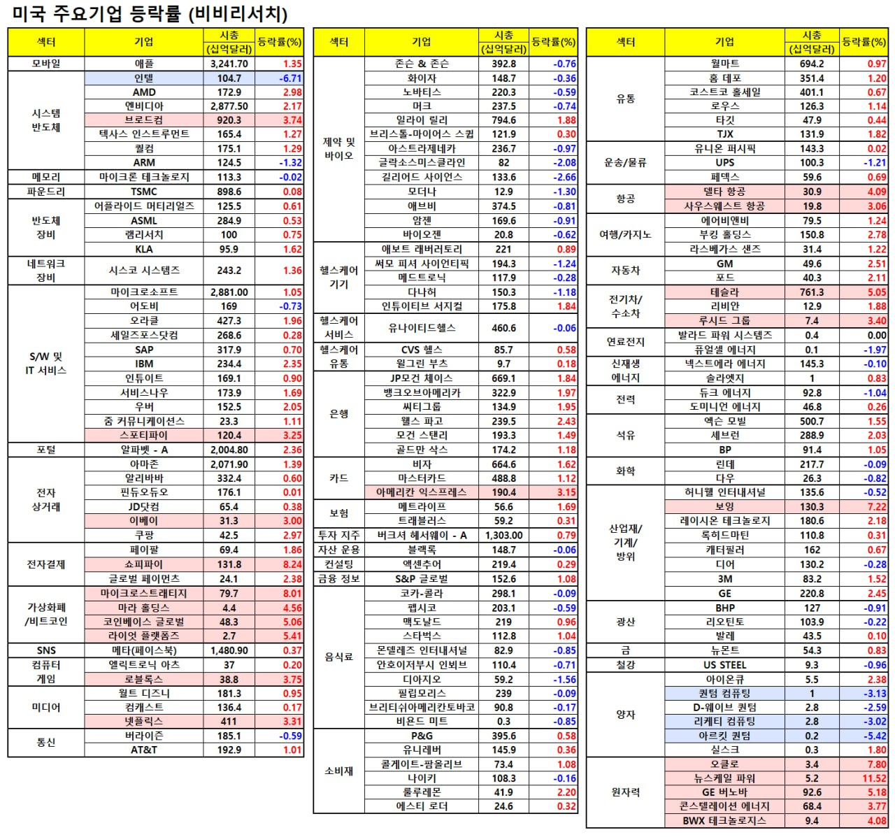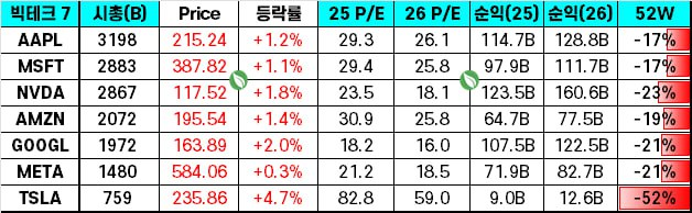 - 시총 15위까지 모두 상승. 테슬라 4.7%, 엔비디아 1.8%