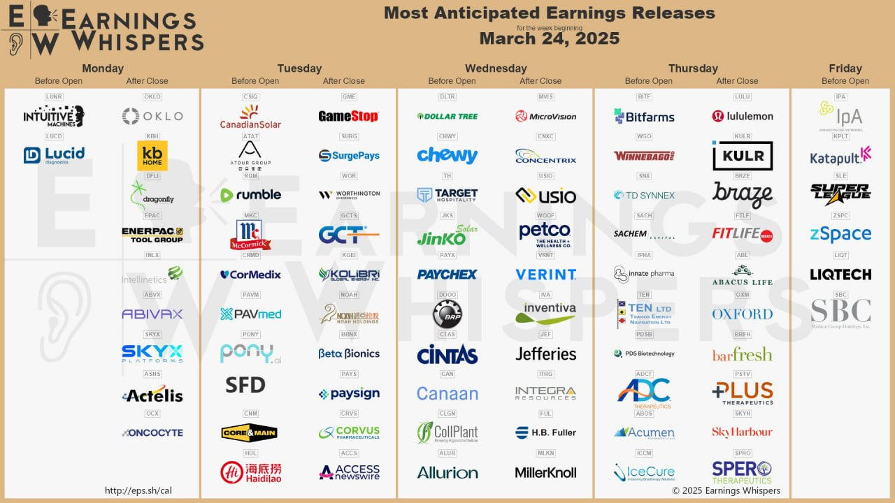 - 이번 주에는 게임스톱ㆍ맥코믹앤컴퍼니(25일), 달러트리ㆍ제프리스 파이낸셜(26일), 룰루레몬 애슬레티카(27일) 등이 실적을 내놓는다.