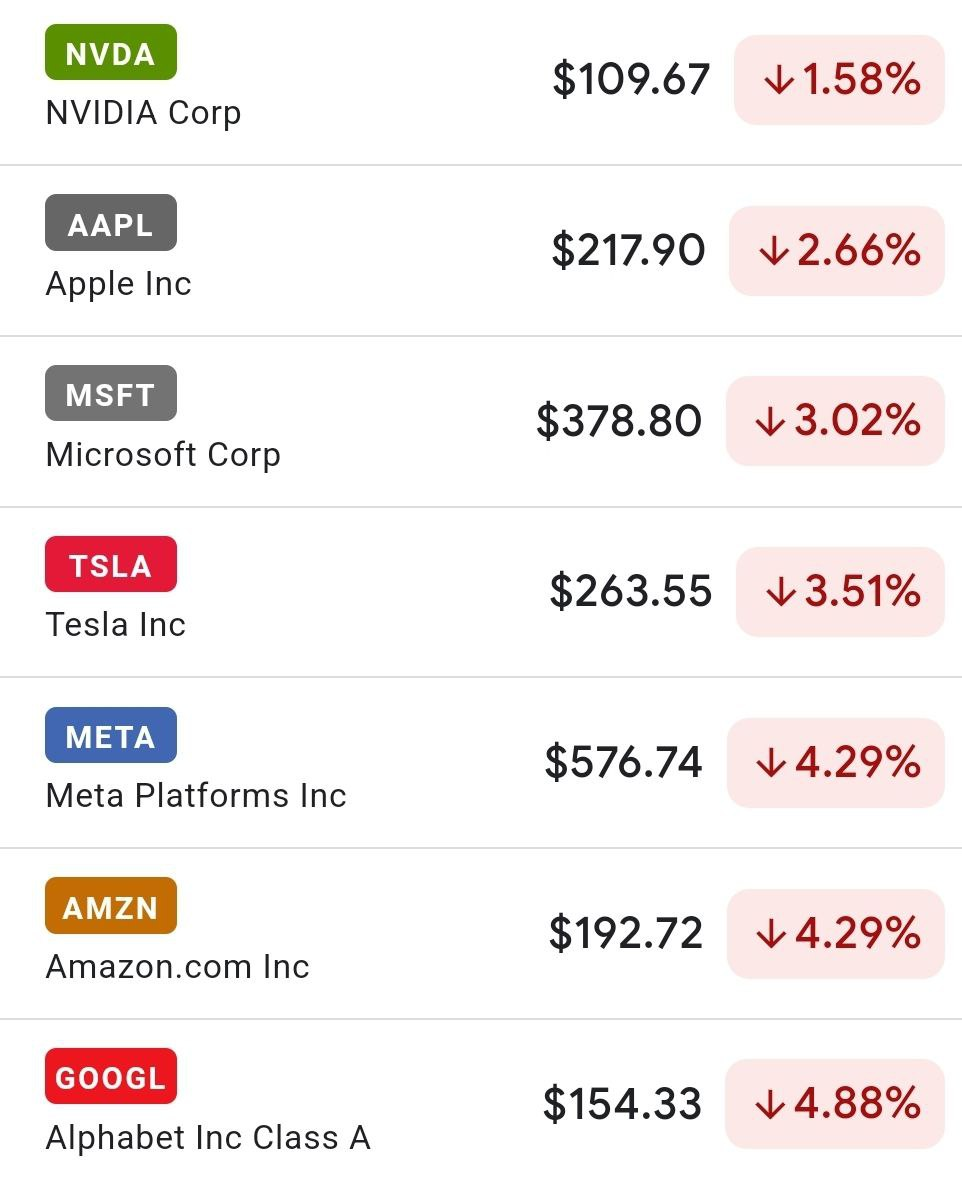 - - 테슬라 3.51% 하락, 엔비디아 1.58% 하락하는 등 전기차와 반도체주 대부분 하락 마감