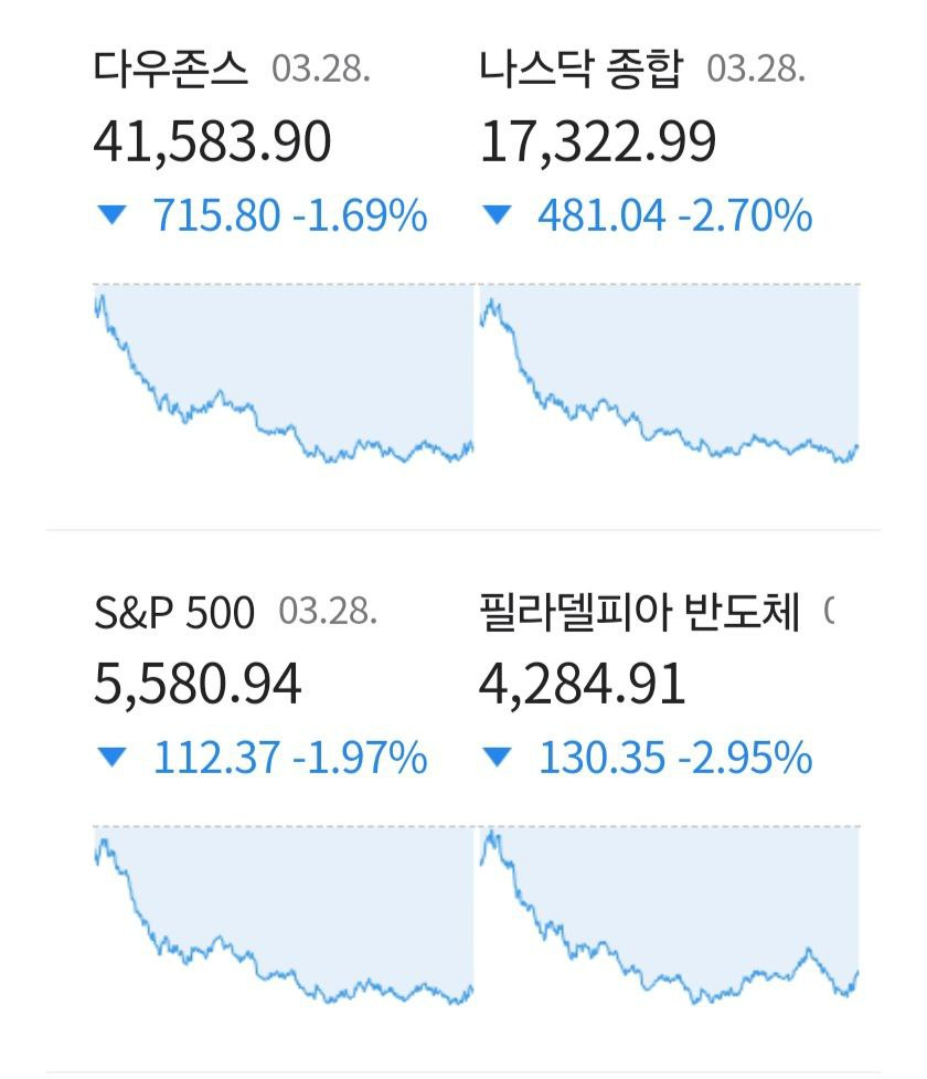3월 29일 시황. 트럼프가 한 방에 보내 버린 증시