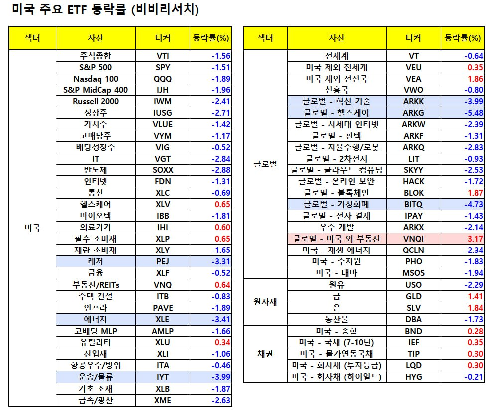 - 이에 아마존은 물론 MS(-2.14%), 알파벳(-2.07%), 메타플랫폼(-1.97%) 등 자본 지출이 크게 증가했지만 수익화 논란이 일고 있는 대형 기술주의 하락도 진행.