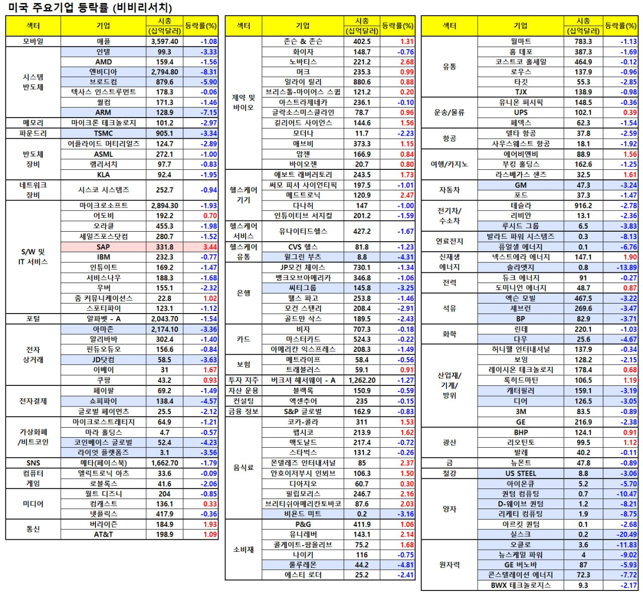 - ARM(-8.04%), 아리스타네트웍(-7.57%)도 하락.