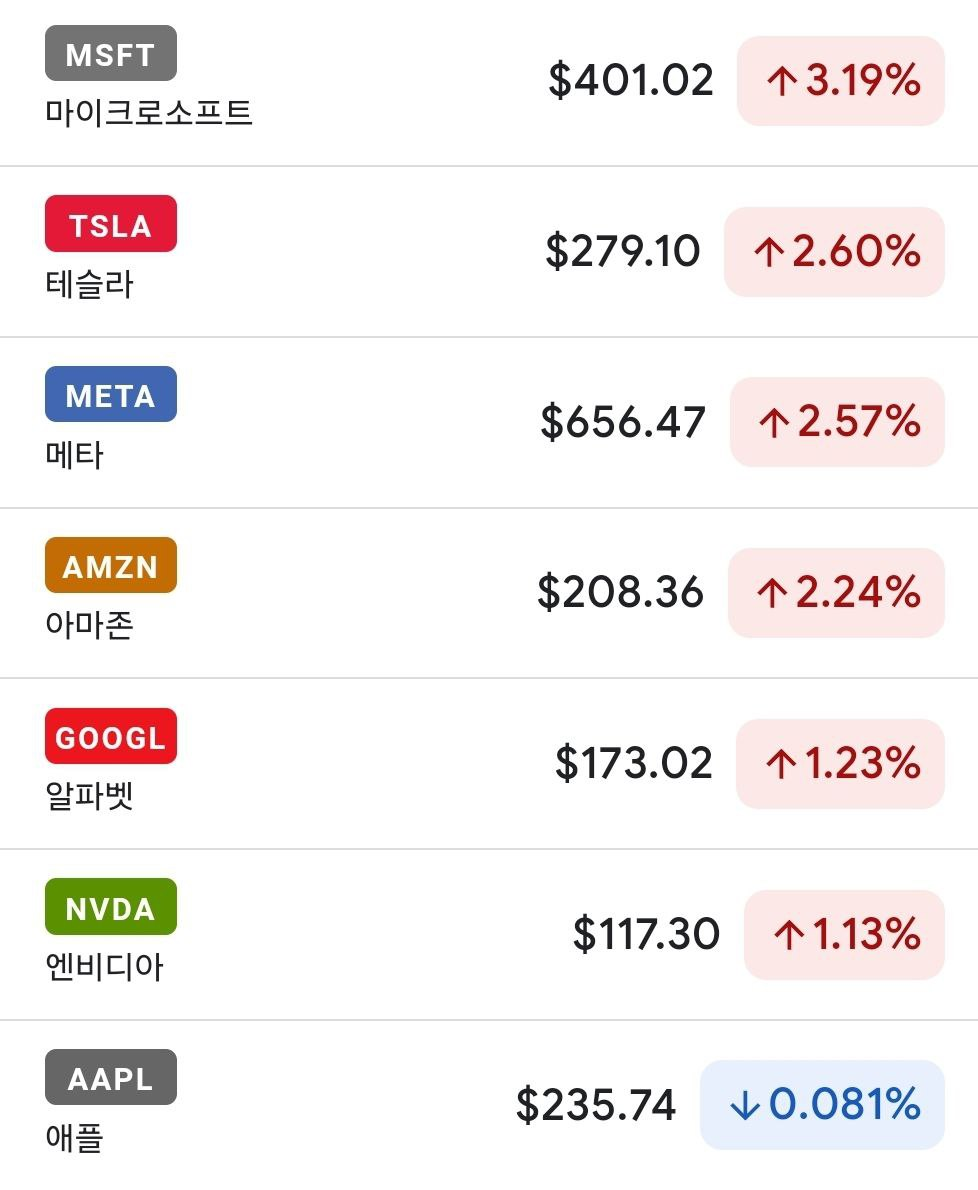 - 메타 플랫폼(+2.57%)은 메타 AI 사용자가 급증 했다는 소식에 상승.