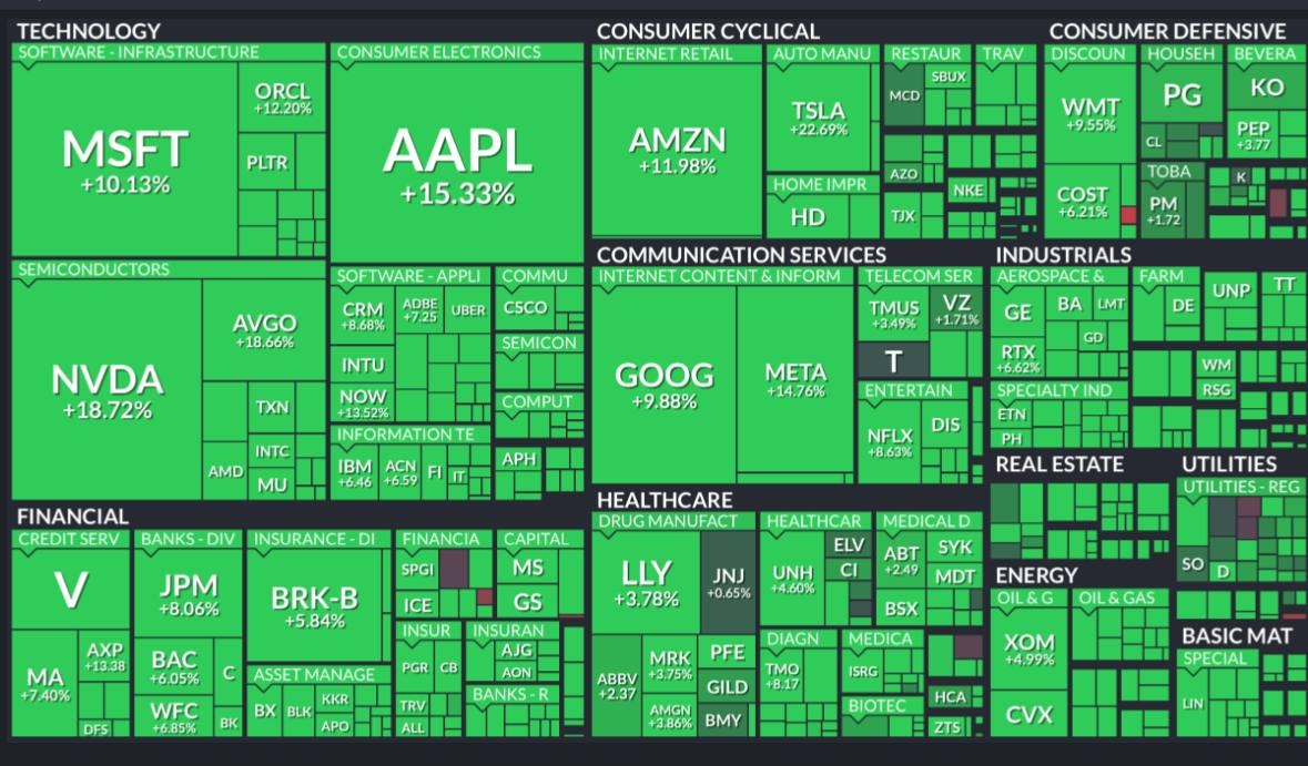 - *특징 종목: 엔비디아 18.72%, 테슬라 22.64% 급등