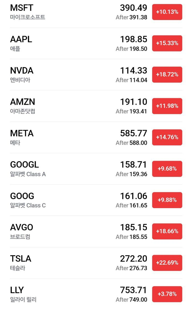 - 애플 15%·엔비디아 18% 등 빅테크 주가 폭등…테슬라 22%↑