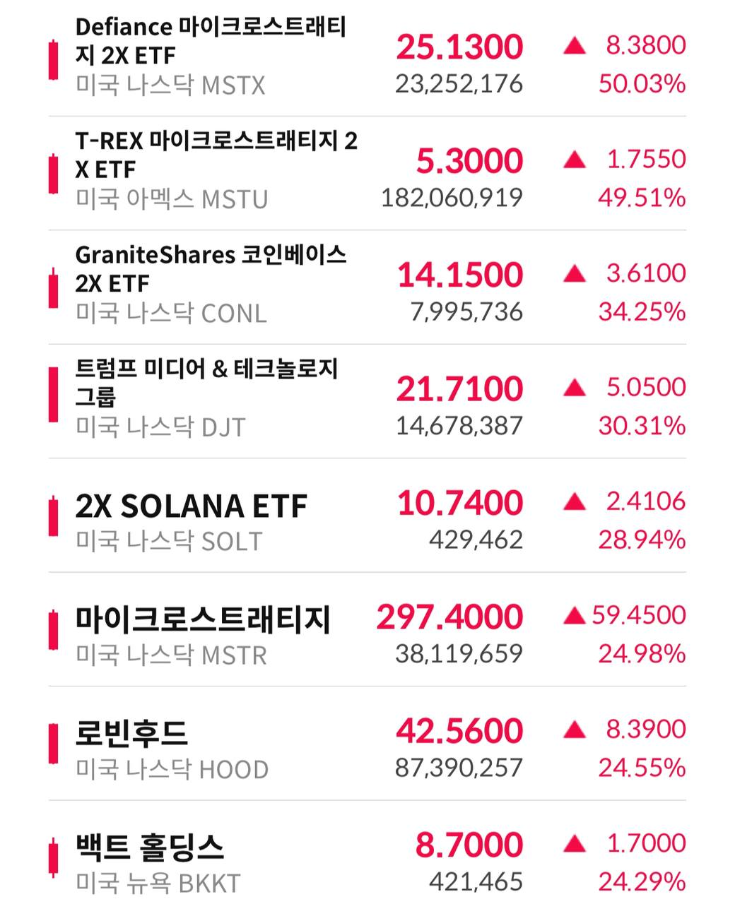 - 그 외 브로드컴(+18.66%), AMD(+23.82%), ASML(+15.43%), ARM(+24.20%)와 하락하던 마이크론(+18.81%), TSMC(+12.27%) 등 대부분 반도체 종목군이 트럼프 발언에 급등.