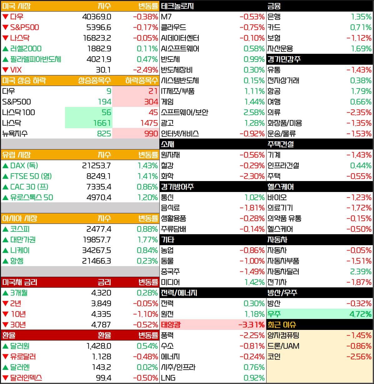 - *특징 종목: 사이버 보안회사 강세, 반도체 업종 견고, 대형 기술주 부진
