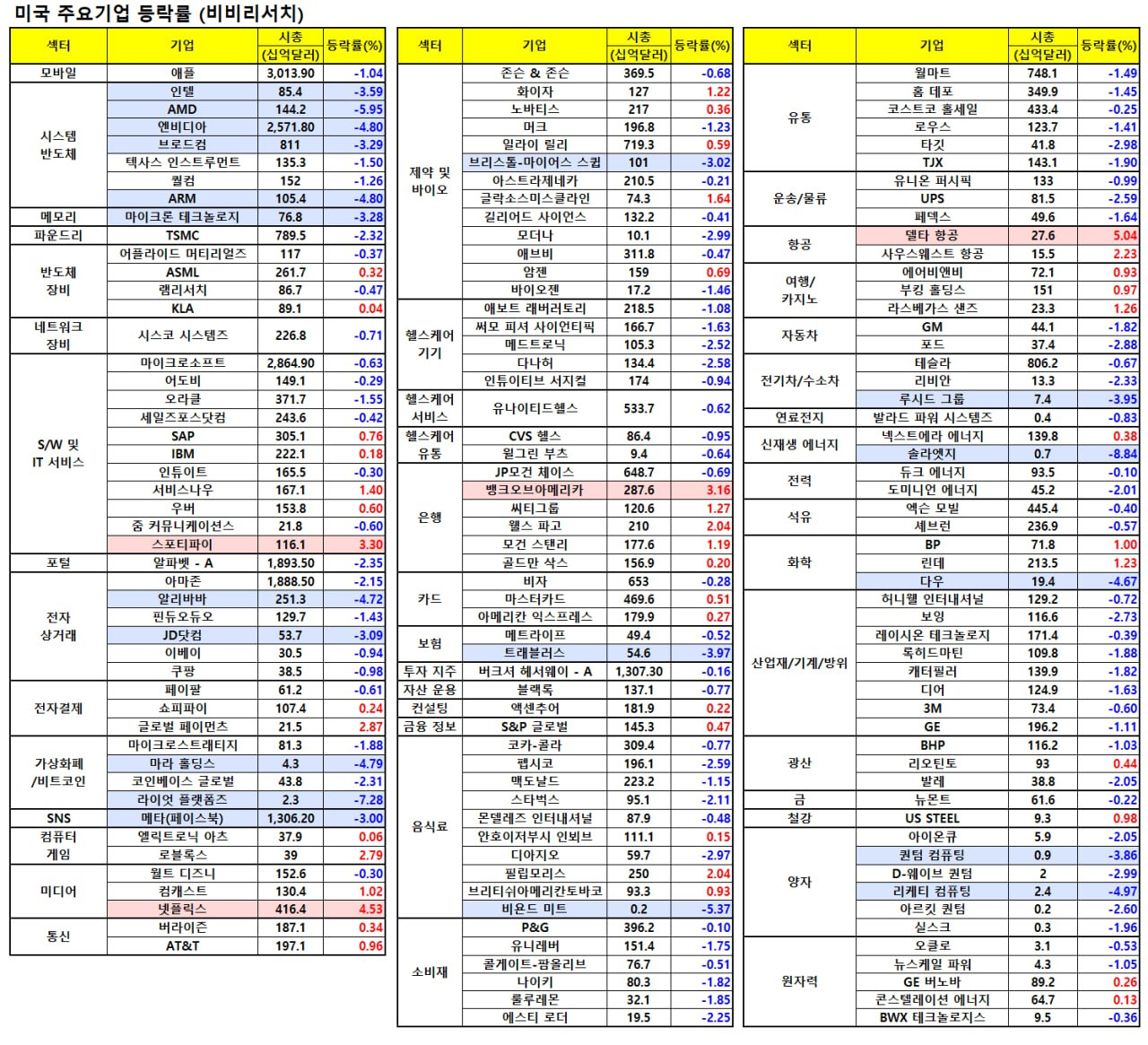 - 그 외에도 마이크론, 브로드컴, TSMC등 대부분의 반도체 관련 종목이 시간외로 하락중