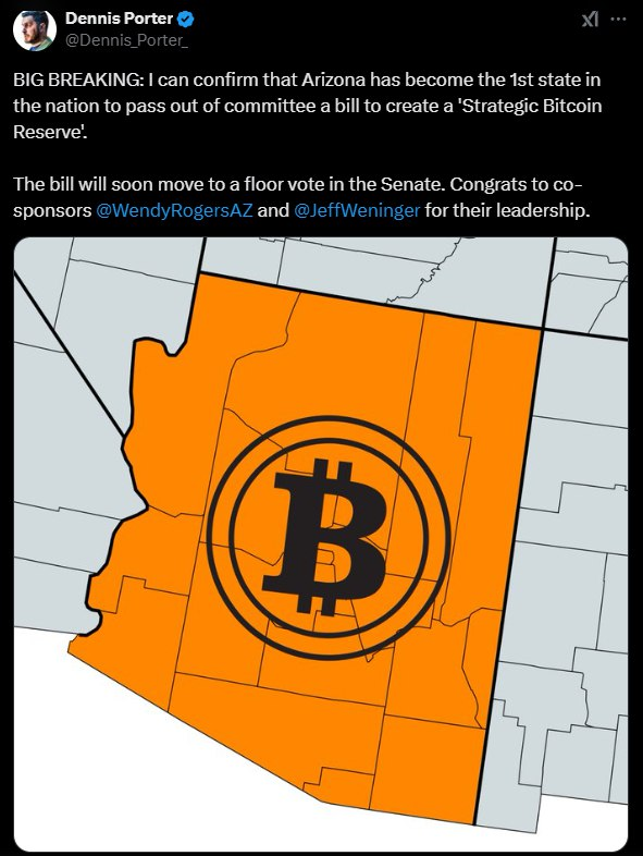 애리조나, 미국 첫 디지털자산 준비금 법안 최종 표결 앞둬
