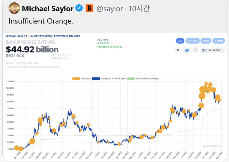 - 스트래티지, 비트코인 53만개 보유중인 세일러 '추가 매입' 시사