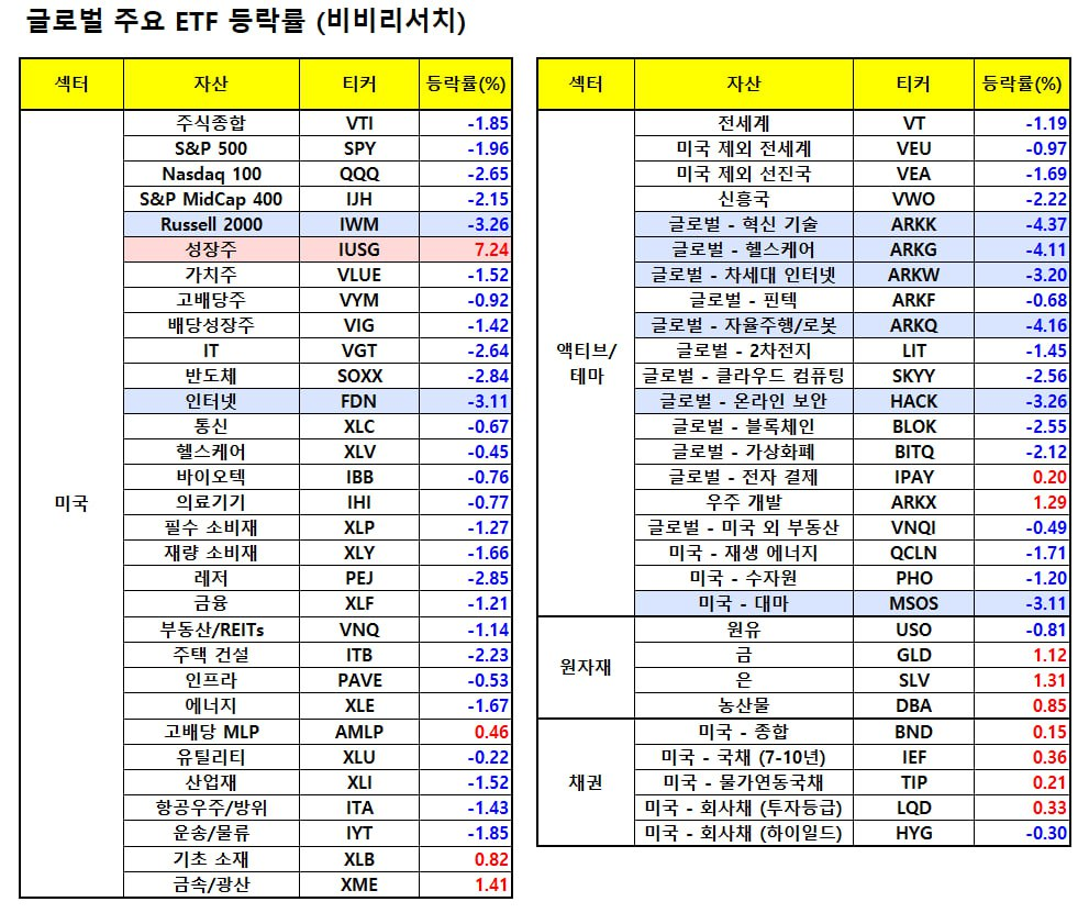 - *특징 종목: 테슬라, 인도량 문제로 6.4% 급락 후 머스크 복귀 기대로 상승 전환