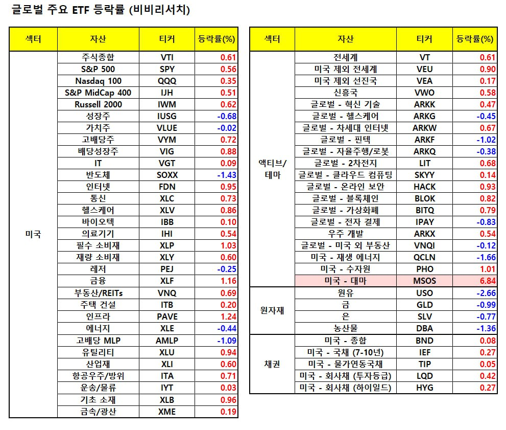 - 넥스트라 에너지(+1.60%), 듀크에너지(+0.85%)등 유틸리티 업종은 경기 방어와 배당에 대한 기대를 반영하며 상승.