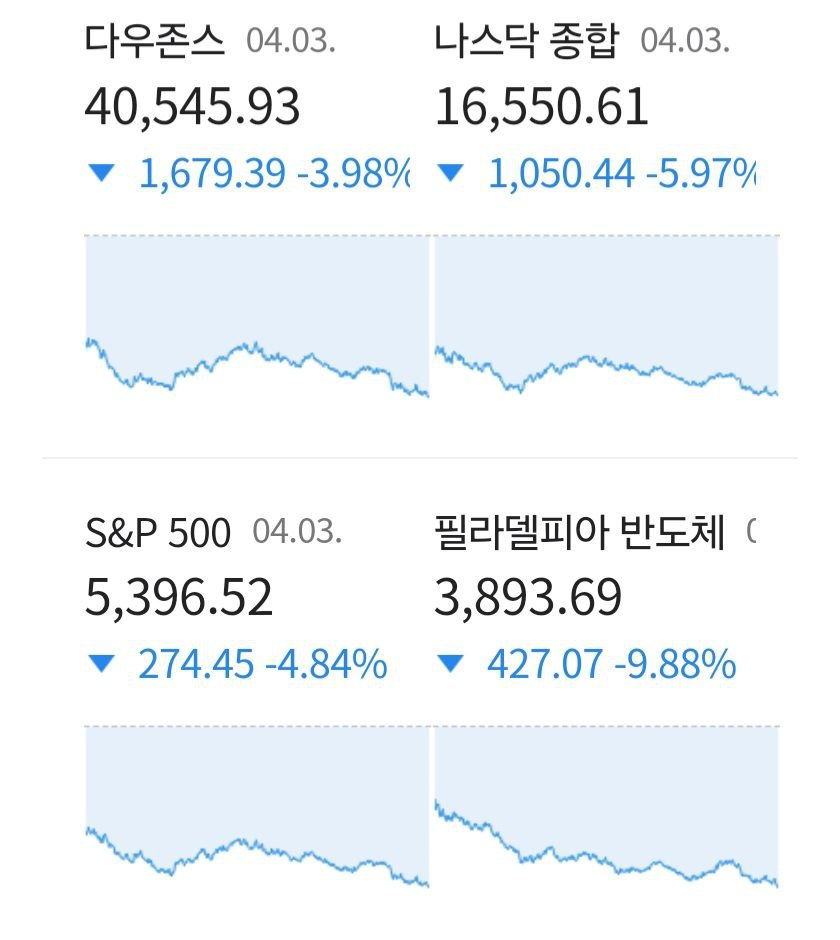 - 04/04 미 증시, 상호 관세 여파와 경기침체 우려를 반영하며 나스닥 6% 급락