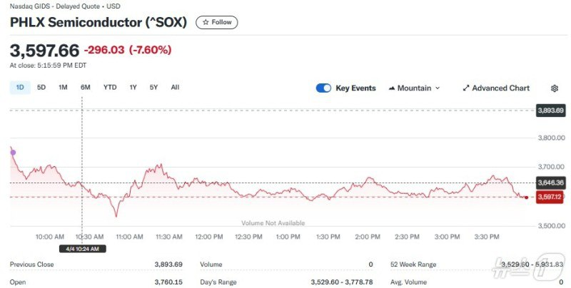- 필라델피아 반도체 지수는 7.60% 하락