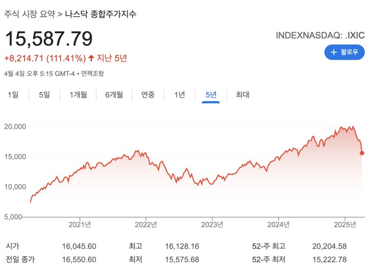 - 트럼프 관세 부과 후 목,금 이틀동안 S&P500 기준으로 10.53% 하락.