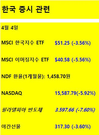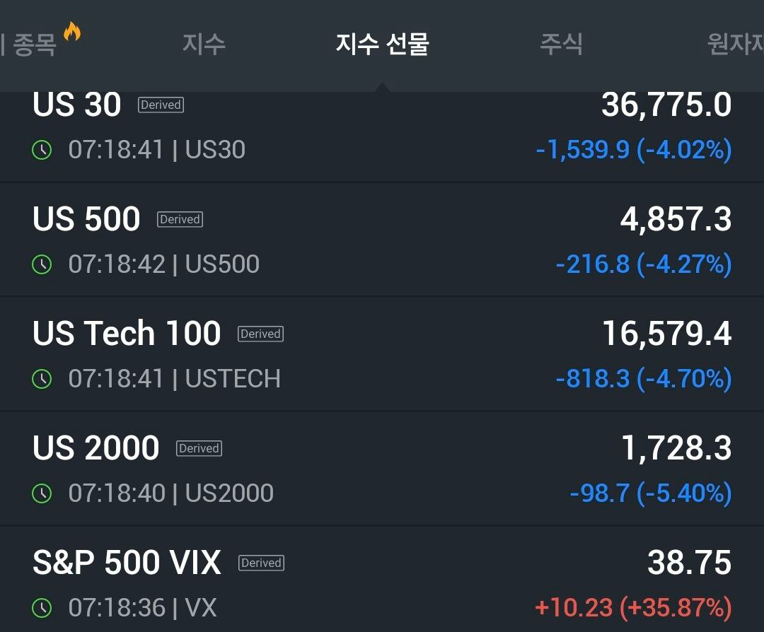 - 04/07 미국 시간 외 선물 추가 급락: 강경한 트럼프