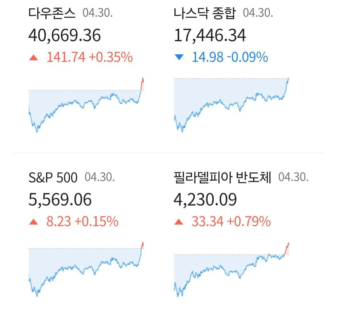 - 05/01 미 증시, 경기 침체 우려에 크게 하락 후 PCE 가격 안정과 무역 협상 기대에 혼조