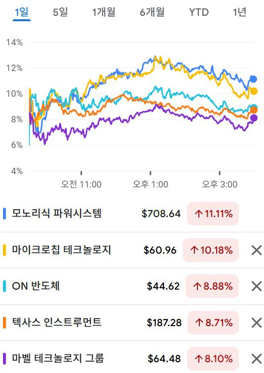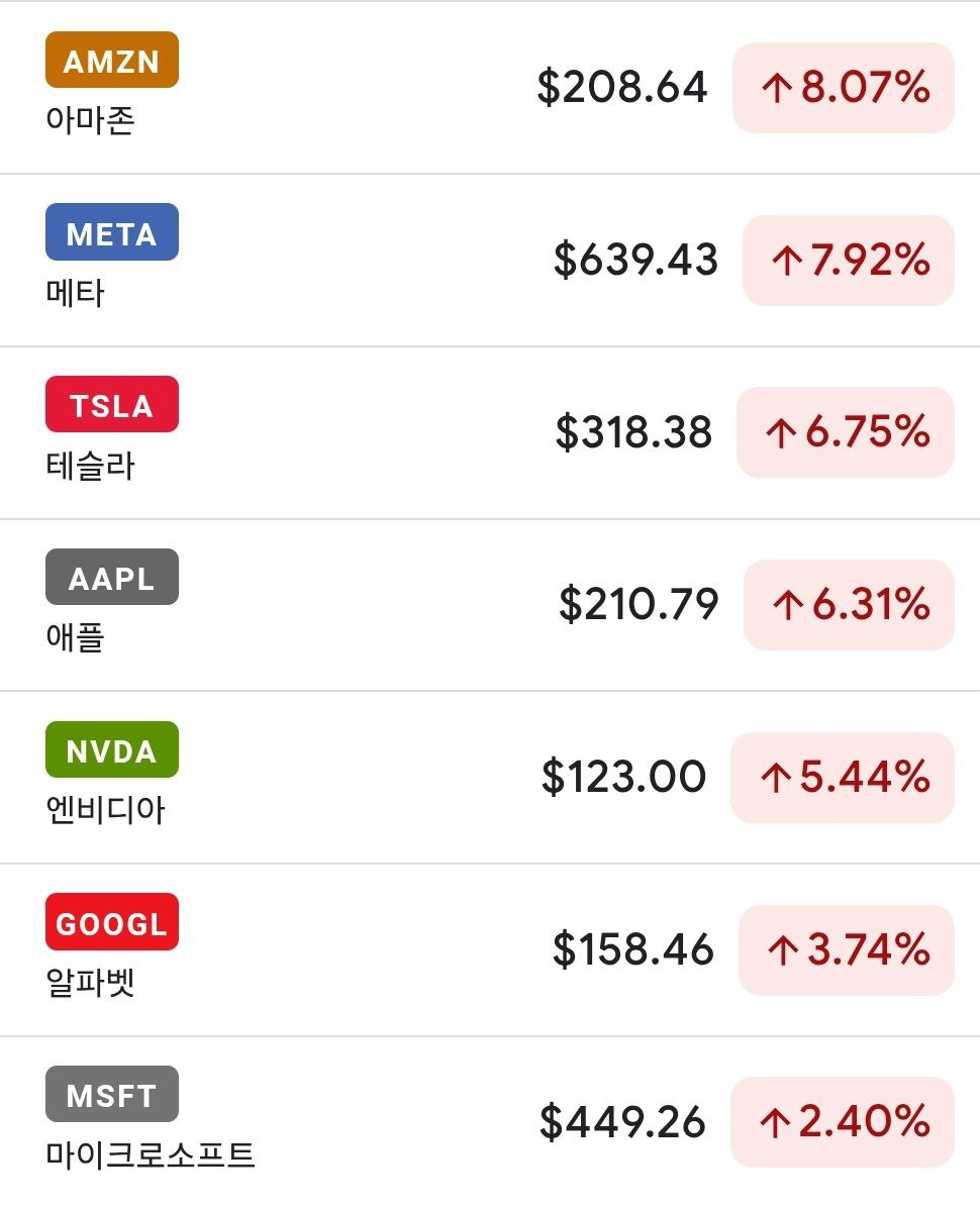 - 아마존 8%, 애플 6%, 마이크론 7%, 엔비디아 5%대 상승